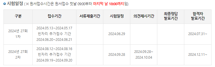 - 수수료 결제: 1차 시험 수수료는 21,000원, 2차 시험은 14,000원으로, 온라인 결제 시스템을 통해 결제 가능합니다.